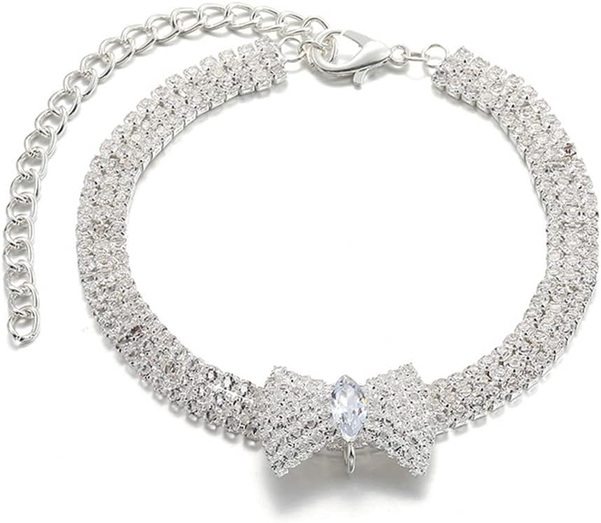 The cat diamond collar is easy to put on and take off, with a secure and removable buckle, three layers of rhinestones, and a bow style.